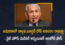 అమెరికాలో నాల్గవ బూస్టర్ డోస్ అవసరం రావచ్చు – వైట్ హౌస్ మెడికల్ అడ్వయిజర్ ఆంటోనీ ఫౌసీ