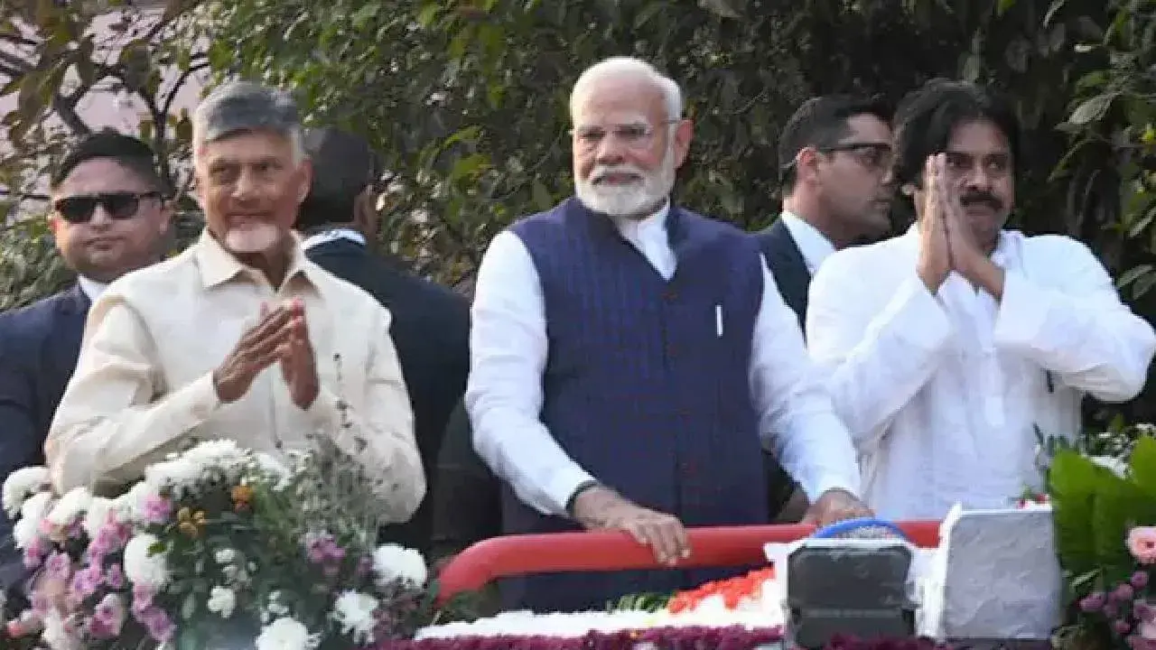 ప్రధాని నరేంద్ర మోదీ ఆంధ్రప్రదేశ్లో తన మూడోసారి అధికారంలోకి వచ్చిన తర్వాత తొలిసారి రాష్ట్రంలో అభివృద్ధి కార్యక్రమాలకు శ్రీకారం చుట్టారు. విశాఖపట్టణంలో జరిగిన ఈ బహిరంగ సభలో ఆయన రాష్ట్ర అభివృద్ధికి ప్రత్యేక ప్రాధాన్యత ఇస్తానని హామీ ఇచ్చారు. ఈ కార్యక్రమంలో ముఖ్యమంత్రి చంద్రబాబు నాయుడు, డిప్యూటీ సీఎం పవన్ కల్యాణ్లతో కలిసి రోడ్ షో నిర్వహించి ప్రజలతో మమేకమయ్యారు.