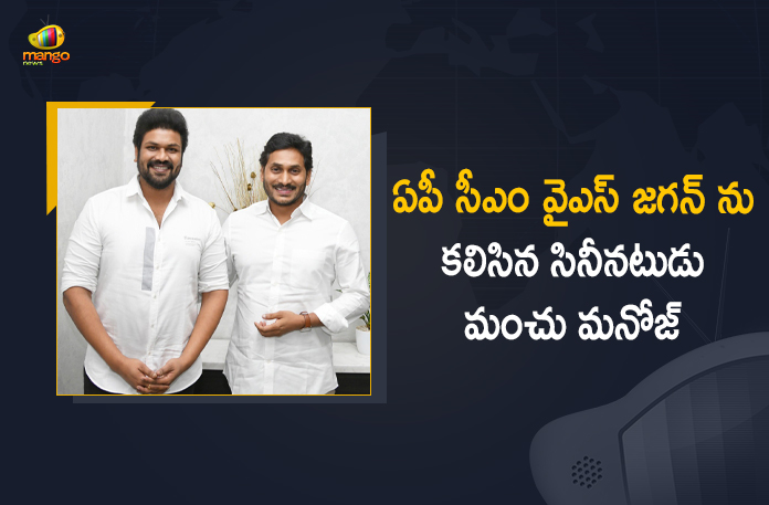 Actor Manchu Manoj Meets AP CM YS Jagan, Actor Manchu Manoj Meets AP CM YS Jagan Today, AP CM YS Jagan, Manchu Manoj Meets AP CM, Manchu Manoj Meets AP CM News, Manchu Manoj Meets AP CM YS Jagan, Manchu Manoj meets CM Jagan in Amaravati, Manchu Manoj meets YS Jagan, Manchu Manoj’s surprise meet with AP CM Jagan, Mango News