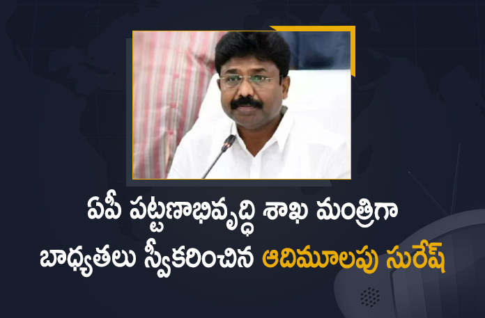 ఆంధ్రప్రదేశ్ పురపాలక, పట్టణాభివృద్ధి శాఖ నూతన మంత్రిగా ఆదిమూలపు సురేష్ బాధ్యతలు స్వీకరించారు. గురువారం సచివాలయంలోని తన ఛాంబర్లో ప్రత్యేక పూజలు నిర్వహించిన అనంతరం లాంఛనంగా బాధ్యతలు చేపట్టారు. మంత్రిగా బాధ్యతలు స్వీకరించిన అనంతరం ఆదిమూలపు సురేష్ పట్టణాభివృద్ధి శాఖ కార్యకలాపాలపై సమీక్షా సమావేశం నిర్వహించారు. రాష్ట్రవ్యాప్తంగా ఆంధ్రప్రదేశ్ టౌన్షిప్ అండ్ ఇన్ఫ్రాస్ట్రక్చర్ డెవలప్మెంట్ కార్పొరేషన్ (ఏపీ టిడ్కో) ఇళ్ల నిర్మాణాన్ని త్వరితగతిన పూర్తి చేయాలని మున్సిపల్ అడ్మినిస్ట్రేషన్ మరియు అర్బన్ డెవలప్మెంట్ మంత్రి ఆదిమూలపు సురేష్ సంబంధిత అధికారులను కోరారు. సీఎం వైఎస్ జగన్ నేతృత్వంలోని తొలి మంత్రివర్గంలో విద్యాశాఖ మంత్రిగా కొనసాగిన ఆదిమూలపు సురేష్, ఇటీవల చేపట్టిన మంత్రివర్గ పునఃవ్యవస్థీకరణలో అనూహ్యంగా మళ్ళీ మంత్రి పదవి దక్కించుకున్నారు.