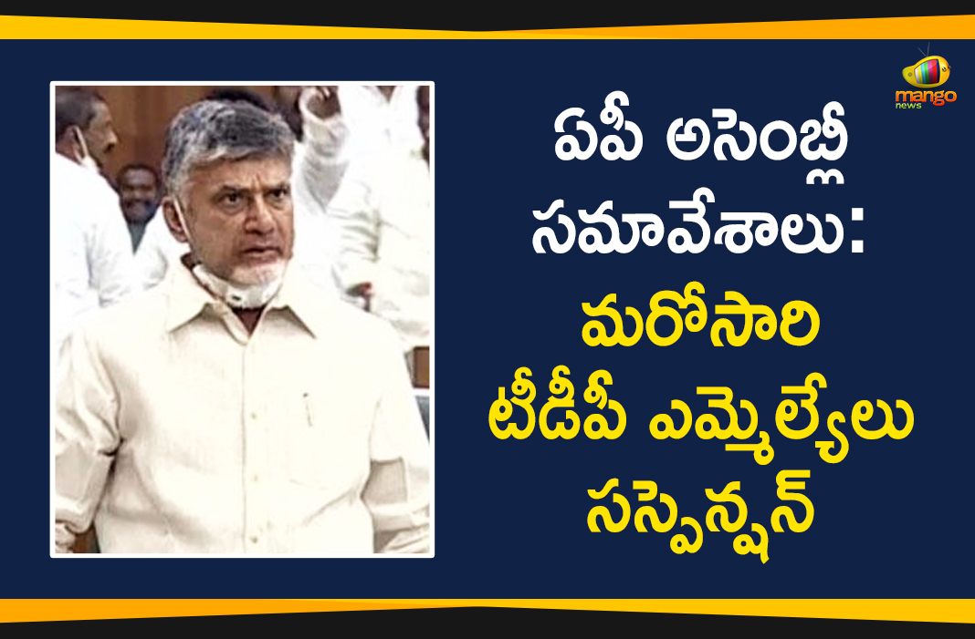 ఆంధ్రప్రదేశ్ అసెంబ్లీ శీతాకాల సమావేశాలు రెండో రోజు కూడా వాడివేడిగా కొనసాగాయి. రెండో రోజు సభలో టిడ్కో ఇళ్లు, పేదలకు ఇళ్ల స్థలాల సేకరణ, ఇళ్ల నిర్మాణం, ఆక్వా బిల్లు సహా పలు అంశాలపై అధికార, ప్రతిపక్ష సభ్యుల మధ్య వాదనలు జరిగాయి. ఓదశలో టీడీపీ అధినేత చంద్రబాబు, టీడీపీ ఎమ్మెల్యేలపై స్పీకర్ తమ్మినేని సీతారాం ఆగ్రహం వ్యక్తం చేశారు. ప్రజలు గమనిస్తున్నారని, సభలో హుందాగా నడుచుకోవాలని హితవు పలికారు. అనంతరం కూడా సభలో వాగ్వాదం కొనసాగుతున్న నేపథ్యంలో సభా కార్యకలాపాలకు పదే పదే అడ్డుపడుతున్నారని 12 మంది టీడీపీ ఎమ్మెల్యేలను ఒకరోజు పాటుగా సస్పెండ్ చేస్తున్నట్టు స్పీకర్ తమ్మినేని సీతారాం ప్రకటించారు. సస్పెండ్ అయిన ఎమ్మెల్యేలతో పాటు చంద్రబాబు కూడా సభ బయటకు వెళ్లారు. మరోవైపు అసెంబ్లీ సమావేశాల మొదటిరోజున కూడా టీడీపీ ఎమ్మెల్యేలు సస్పెన్షన్ కు గురైన సంగతి తెలిసిందే.