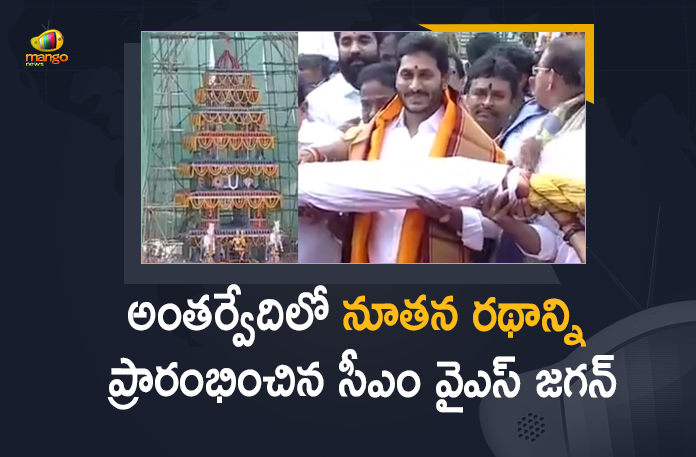 అంతర్వేదిలో సుమారు కోటి రూపాయల వ్యయంతో 41 అడుగుల ఎత్తైన నూతన రథాన్ని రాష్ట్రప్రభుత్వం చేయించింది. ఏడు అంతస్తులతో కూడిన ఈ నూతన రథాన్ని 3 నెలల కాలంలోనే అత్యుత్తమంగా నిర్మించారు. శుక్రవారం నుంచి స్వామి కల్యాణోత్సవాలు ప్రారంభమై ఫిబ్రవరి 28 వరకు జరగనున్నాయి. ఈ నేపథ్యంలో నూతనంగా సిద్ధం చేసిన రథాన్ని సీఎం ప్రారంభించారు. ఈ కార్యక్రమంలో రాష్ట్ర దేవాదాయ శాఖ మంత్రి వెల్లంపల్లి శ్రీనివాస్, మంత్రులు చెల్లుబోయిన శ్రీనివాస వేణుగోపాలకృష్ణ, కురసాల కన్నబాబు, పలువురు నేతలు, అధికారులు పాల్గొన్నారు.