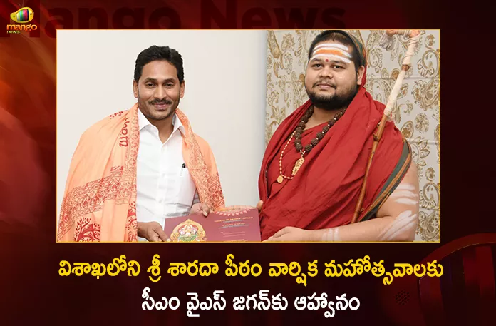 ఆంధ్రప్రదేశ్ ముఖ్యమంత్రి వైఎస్ జగన్ మోహన్ రెడ్డిని గురువారం తాడేపల్లిలోని నివాసంలో విశాఖ శ్రీ శారదా పీఠం ఉత్తరాధికారి స్వాత్మానందేంద్ర సరస్వతి స్వామి కలిశారు. 2023, జనవరి 27వ తేదీ నుంచి 2023, జనవరి 31వ తేదీ వరకు విశాఖలోని శ్రీ శారదా పీఠంలో వార్షిక మహోత్సవాలు జరగనున్నాయి. ఈ నేపథ్యంలో విశాఖ శ్రీ శారదా పీఠం వార్షిక మహోత్సవ ఆహ్వన పత్రికను స్వాత్మానందేంద్ర సరస్వతి స్వామి సీఎం వైఎస్ జగన్ కు అందించారు. ఈ సందర్భంగా సీఎంకు స్వాత్మానందేంద్ర సరస్వతి స్వామి ప్రసాదాలను అందజేశారు. మరోవైపు వార్షిక మహోత్సవాల్లో భాగంగా శ్రీ శారదా పీఠంలో పలు యాగాలు నిర్వహించనున్నారు. ఈ సందర్భంగా ఆ వివరాలను సీఎం వైఎస్ జగన్ కు స్వాత్మానందేంద్ర సరస్వతి స్వామి వివరించినట్టు తెలుస్తుంది.