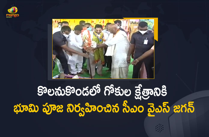 అనంతరం తాడేపల్లి మండలంలోని కొలనుకొండ చేరుకొని ఇస్కాన్ ఏర్పాటు చేస్తున్న హరేకృష్ణ గోకుల క్షేత్రానికి సీఎం వైఎస్ జగన్ భూమి పూజ నిర్వహించారు. ఇస్కాన్ తరపున ఏపీలో ఏర్పాటు కానున్న అతిపెద్ద క్షేత్రం ఇదే కాగా, దీనిని రూ.70 కోట్లతో ఏర్పాటు చేస్తున్నారు. ఇక్కడ శ్రీవెంకటేశ్వరస్వామి, రాధాకృష్ణుల ఆలయాలను నిర్మిస్తున్నారు. ఆలయాలతో పాటుగా యోగ ధ్యాన కేంద్రాలు, కళా క్షేత్రం, యువత కోసం శిక్షణ కేంద్రం కూడా ఏర్పాటు చేయనున్నారు. మరోవైపు సీఎం వైఎస్ జగన్ పర్యటన నేపథ్యంలో పోలీసులు భారీ భద్రత ఏర్పాట్లు చేశారు.