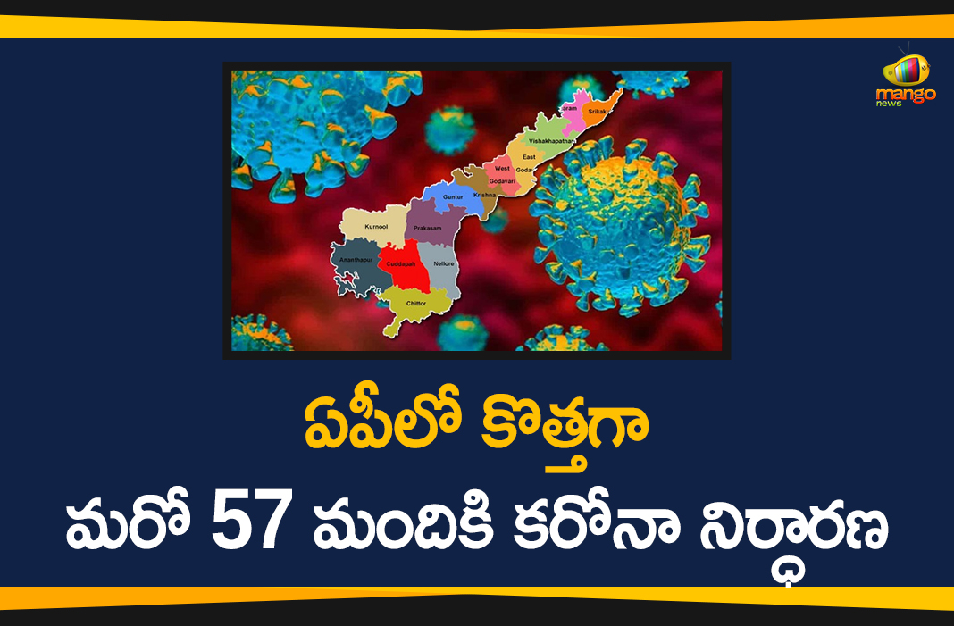ఏపీలో కొత్తగా నెల్లూరు, చిత్తూరులో జిల్లాలలో 14 చొప్పున, కృష్ణాలో 9, కర్నూల్ లో 8, అనంతపూర్ లో 4, విజయనగరం లో 3, కడప, విశాఖపట్నంలో 2 చొప్పున, తూర్పు గోదావరిలో ఒక కేసుతో మొత్తం 57 మందికి కరోనా పాజిటివ్ గా నిర్ధారణ అయింది. అయితే చిత్తూరు జిల్లాలో నమోదైన 13, నెల్లూరులో 8, కర్నూల్ లో 5, కడప, అనంతపూర్ లలో ఒక్కో కేసుతో కలిపి మొత్తం 28 కోయంబేడు(తమిళనాడు) నుంచి వచ్చినవిగా చెప్పారు. ఇక ఈ వైరస్ వలన ఇప్పటివరకు 48 మంది మృతి చెందగా, మరో 1252 మంది కోలుకుని డిశ్చార్జి అయ్యారు. ఇక ప్రస్తుతం 857 మంది చికిత్స పొందుతున్నారు.