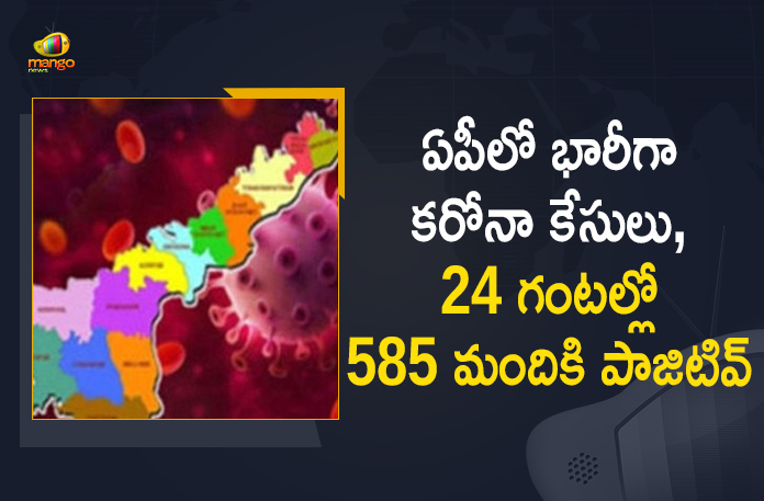 ఆంధ్రప్రదేశ్ లో కరోనా కేసులు మరోసారి భారీగా నమోదయ్యాయి. రాష్ట్రంలో కొత్తగా 585 పాజిటివ్ కేసులు నమోదు కావడంతో మార్చి 24, బుధవారం ఉదయం 10 గంటల వరకు మొత్తం పాజిటివ్ కేసుల సంఖ్య 8,95,121 కు చేరింది. గత 24 గంటల్లో మరో 251 మంది కరోనా నుంచి పూర్తిగా కోలుకుని సంపూర్ణ ఆరోగ్యవంతులు అయినట్టు తెలిపారు. ఇక కరోనా వలన చిత్తూరు, గుంటూరు, కర్నూల్, విశాఖపట్నంలో ఒక్కొక్కరు చొప్పున మరణించారు. దీంతో రాష్ట్రంలో మొత్తం మరణాల సంఖ్య 7197 కి పెరిగింది. గత 24 గంటల్లో 35066 శాంపిల్స్ కు పరీక్షలు నిర్వహించగా, మొత్తం పరీక్షల సంఖ్య 1,48,40,401 కు చేరుకుంది.