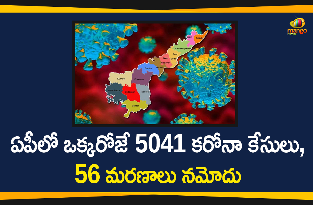 ఆంధ్రప్రదేశ్ లో కరోనావైరస్ ప్రభావం రోజురోజుకి మరింతగా పెరుగుతుంది. దీంతో రికార్డ్ స్థాయిలో కరోనా కేసులు, మరణాలు నమోదవుతున్నాయి. రాష్ట్రంలో మరో 5041 కరోనా పాజిటివ్ కేసులు నమోదయ్యాయి. కొత్తగా నమోదైన 5041 కేసులతో కలిపి జూలై 19, ఆదివారం ఉదయం 10 గంటల వరకు మొత్తం కేసుల సంఖ్య 49650 కు చేరింది. గత 24 గంటల్లో(9AM-9AM) 31,148 శాంపిల్స్ పరీక్షించినట్టుగా తెలిపారు.