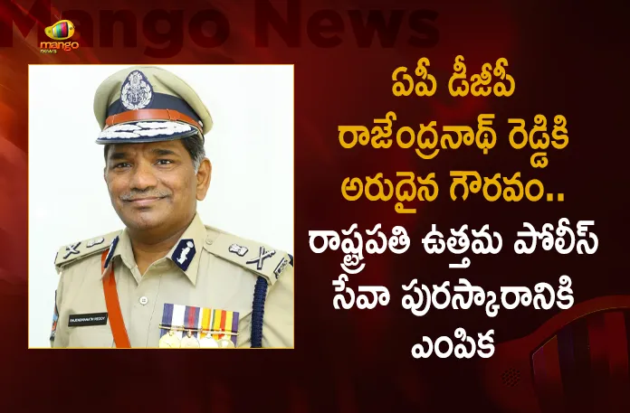 ఆంధ్రప్రదేశ్ డీజీపీ రాజేంద్రనాథ్ రెడ్డికి అరుదైన గౌరవం దక్కింది. 2020 సంవత్సరానికి గానూ ఆయన ప్రతిష్టాత్మక రాష్ట్రపతి పోలీసు మెడల్కు ఎంపికయ్యారు. ఈ మేరకు ‘ఆజాదీ కా అమృత్ మహోత్సవ్’ వేడుకల సందర్భాన్ని పురస్కరించుకుని కేంద్ర హోం శాఖ ఈ అవార్డును ప్రకటించింది. విధి నిర్వహణలో ఉత్తమ సేవలు అందించినందుకు ‘ఉత్తమ సేవలు–2020’ సంవత్సరానికి డీజీపీ రాజేంద్రనాథ్ రెడ్డికి ఈ పురస్కారం లభించింది. ముఖ్యమంత్రి వైఎస్ జగన్ మోహన్ రెడ్డి చేతుల మీదుగా విజయవాడ లోని ఇందిరా గాంధీ మునిసిపల్ స్టేడియంలో రేపు (ఆగస్టు) 15 స్వాతంత్య్ర దినోత్సవం రోజున డీజీపీకి ప్రదానం చేయనున్నారు. ఇక 1992 ఐపీఎస్ బ్యాచ్కు చెందిన కేవీ రాజేంద్రనాథ్రెడ్డి, డీజీపీగా బాధ్యతలు చేపట్టక మునుపు విజయవాడ నగర పోలీస్ కమిషనర్, ఇంటెలిజెన్స్ డైరెక్టర్ జనరల్, విజిలెన్స్–ఎన్ఫోర్స్మెంట్ డైరెక్టర్ జనరల్తోపాటు వివిధ హోదాల్లో విధులు నిర్వహించిన విషయం తెలిసిందే.
