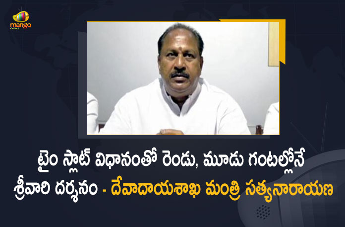ఒకప్పుడు తిరుమల వచ్చి శ్రీవారిని దర్శించుకోవాలంటే ఒక రోజంతా భక్తులు క్యూలైన్లలోనే వేచి ఉండాల్సిన పరిస్థితులు ఉండేవని.. భక్తులకు దాదాపు 2 రోజుల సమయం పట్టేదన్నారు ఏపీ దేవాదాయశాఖ మంత్రి కొట్టు సత్యనారాయణ. అయితే ఇప్పుడు అమలు చేస్తున్న టైం స్లాట్ విధానం వలన భక్తులు కేవలం రెండు, మూడు గంటల్లోనే శ్రీవారిని దర్శించుకునే వీలుందని తెలిపారు మంత్రి సత్యనారాయణ. మంత్రివర్గ పునర్వ్యవస్థీకరణలో భాగంగా సత్యనారాయణకు కొత్తగా మంత్రి పదవి వరించింది. తిరుపతిలో రెండు రోజుల కిందట సర్వదర్శనం టోకెన్ల కౌంటర్ల దగ్గర జరిగిన తోపులాటలో కొందరు భక్తులు గాయపడటం తెలిసిందే.