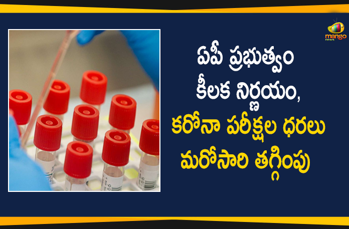 ఆంధ్రప్రదేశ్ రాష్ట్రంలో కరోనా నియంత్రణలో భాగంగా రోజువారీగా పెద్ద సంఖ్యలో కరోనా పరీక్షలు నిర్వహిస్తున్నారు. రాష్ట్రంలో ఐసీఎంఆర్ అనుమతి ఇచ్చిన ఎన్ఏబీఎల్ ప్రైవేట్ ల్యాబ్స్ లలో కూడా కరోనా పరీక్షలు జరుగుతున్నాయి. ఈ నేపథ్యంలో ప్రైవేట్ ల్యాబ్స్ లో ఆర్టీపీసీఆర్ కరోనా పరీక్షలకు చెల్లించే ధరలను మరోసారి తగ్గిస్తూ ఏపీ ప్రభుత్వం కీలక నిర్ణయం తీసుకుంది. కరోనా పరీక్షల ధరలు తగ్గింపుపై మంగళవారం నాడు ప్రభుత్వం ఉత్తర్వులు జారీ చేసింది.