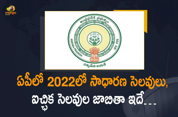 ఆంధ్రప్రదేశ్ రాష్ట్ర ప్రభుత్వం 2022 సంవత్సరానికి సంబంధించిన సెలవులను ప్రకటించింది. సాధారణ, ఐచ్ఛిక(ఆప్షనల్) సెలవులను ప్రకటిస్తూ రాష్ట్ర ప్రభుత్వ ప్రధాన కార్యదర్శి సమీర్ శర్మ సోమవారం నాడు ఉత్తర్వులు జారీ చేశారు. 2022 లో 23 రోజుల సాధారణ సెలవులు, మరో 21 రోజులను ఐచ్ఛిక సెలవులుగా ప్రకటించారు. 2022 నూతన సంవత్సరం ప్రారంభ రోజైన జనవరి 1 వ తేదీని ప్రభుత్వం ఐచ్చిక సెలవుగా ప్రకటించింది.