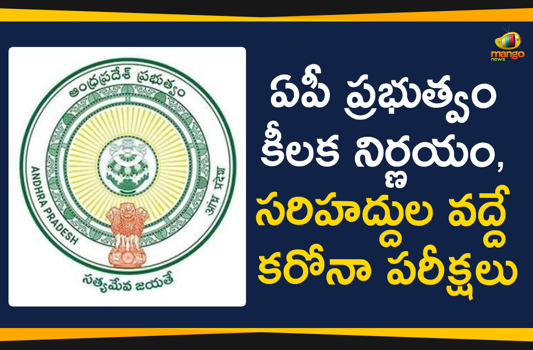కరోనా వ్యాప్తి నేపథ్యంలో ఆంధ్రప్రదేశ్ రాష్ట్ర ప్రభుత్వం మరో కీలక నిర్ణయం తీసుకుంది. పలు ఇతర రాష్ట్రాల నుంచి ఏపీకి వచ్చే వారికి సరిహద్దు చెక్పోస్టుల వద్దనే కోవిడ్-19 (కరోనా వైరస్) పరీక్షలు నిర్వహించాలని రాష్ట్ర ప్రభుత్వం నిర్ణయించింది. ఈ మేరకు రాష్ట్ర వైద్యారోగ్య శాఖ మే 31, ఆదివారం నాడు ఉత్తర్వులు జారీ చేసింది. రాష్ట్ర సరిహద్దు చెక్ పోస్టుల వద్ద పరీక్షలకు సమయం పట్టే అవకాశం ఉన్నందున ప్రయాణికులు అధికారులకు సహకరించాలని కోరారు.