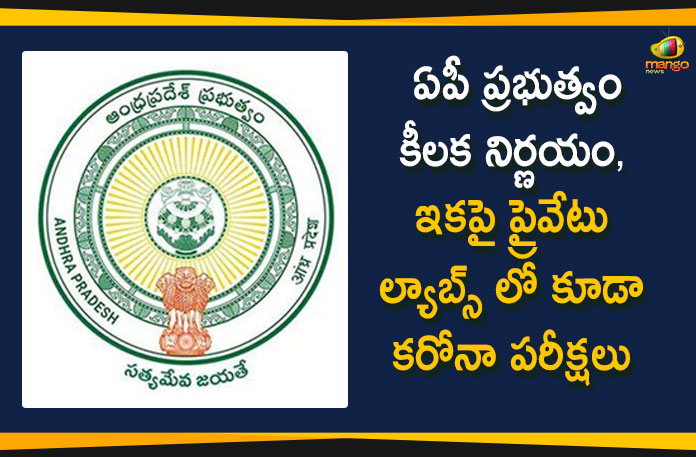కరోనా వైరస్ వ్యాప్తి నివారణకు ఆంధ్రప్రదేశ్ రాష్ట్ర ప్రభుత్వం కట్టుదిట్టమైన చర్యలు తీసుకుంటున్న సంగతి తెలిసిందే. ఈ నేపథ్యంలో ఏపీ ప్రభుత్వం మరో కీలక నిర్ణయం తీసుకుంది. ఇకపై రాష్ట్రంలో కరోనా వైద్య పరీక్షలు నిర్వహించేందుకు ప్రైవేటు ల్యాబ్లకు కూడా అనుమతి ఇస్తూ నిర్ణయం తీసుకుంది. కాగా కేవలం ఐసీఎంఆర్ అనుమతి పొందిన ప్రైవేట్ ల్యాబ్ల్లోనే పరీక్షలు జరిపేందుకు అనుమతిచ్చింది.