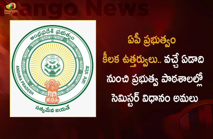 ఆంధ్రప్రదేశ్ ప్రభుత్వం కీలక నిర్ణయం తీసుకుంది. వచ్చే ఏడాది నుంచి ప్రభుత్వ పాఠశాలల్లో సెమిస్టర్ విధానం అమలు చేయడానికి సిద్ధమైంది. ఈ మేరకు దీనికి సంబంధించి శనివారం కీలక ఉత్తర్వులు జారీ చేసింది. ఈ ఉత్తర్వుల ప్రకారం.. 2023-24 విద్యా సంవత్సరం నుండి అన్ని ప్రభుత్వ పాఠశాలల్లో రెండు సెమిస్టర్ల విధానాన్ని ప్రవేశ పెట్టనున్నారు. ముందుగా 1వ తరగతి నుండి 9వ తరగతి వరకూ రెండు సెమిస్టర్ల విధానాన్ని అమలు చేయనున్నారు. ఇక 2024-2025 విద్యా సంవత్సరం నుండి 10వ తరగతికి కూడా దీనిని వర్తింప చేయనున్నారు. ఈ క్రమంలో విద్యా సంవత్సరం ప్రారంభంలోనే రెండు సెమిస్టర్లకు సరిపడా పుస్తకాలను ‘జగనన్న విద్యా కానుక’ ద్వారా పంపిణీ చేయనున్నారు. కాగా సీఎం జగన్ విద్యాశాఖపై ప్రత్యేక దృష్టి సారించి విద్యార్థులకు నాణ్యమైన మరియు సులభతరమైన బోధన కోసం ఈ విధానాన్ని ప్రవేశపెట్టినట్లు ప్రభుత్వ వర్గాలు పేర్కొన్నాయి.