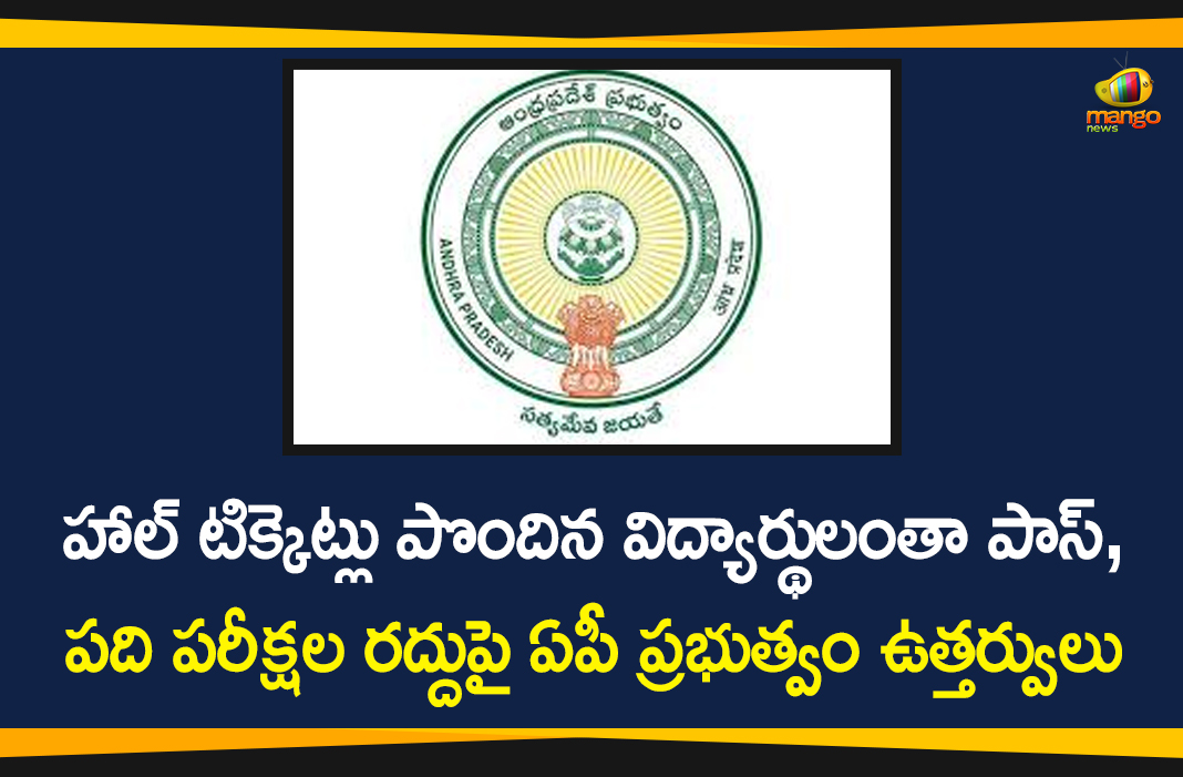 హాల్ టిక్కెట్లు పొందిన విద్యార్థులంతా పాస్, పది పరీక్షల రద్దుపై ఏపీ ప్రభుత్వం ఉత్తర్వులు