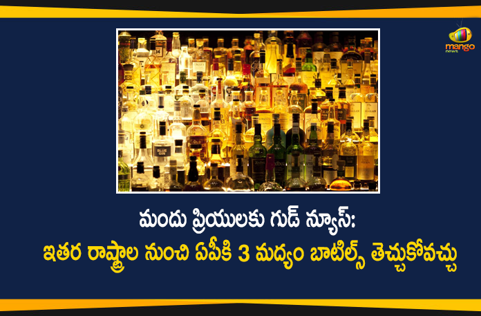 ఆంధ్రప్రదేశ్ రాష్ట్రంలోకి ఇతర రాష్ట్రాల నుంచి మద్యం తీసుకుని రానివ్వకపోవడంపై దాఖలైన రిట్ పిటిషన్పై బుధవారం నాడు ఏపీ హైకోర్టులో విచారణ జరిగింది. ఈ సందర్భంగా ఏపీకి మద్యం తీసుకువచ్చే అంశంపై కోర్టు కీలక తీర్పు వెలువరించింది. జీవో 411 ప్రకారం గతంలో మాదిరిగా ఇతర రాష్ట్రాల నుంచి ఏపీకి 3 మద్యం బాటిల్స్ తెచ్చుకోవచ్చని కోర్టు స్పష్టం చేసింది. ఈ జీవోను అమలు చేయాలని ప్రభుత్వానికి కోర్టు ఆదేశాలు ఇచ్చింది.