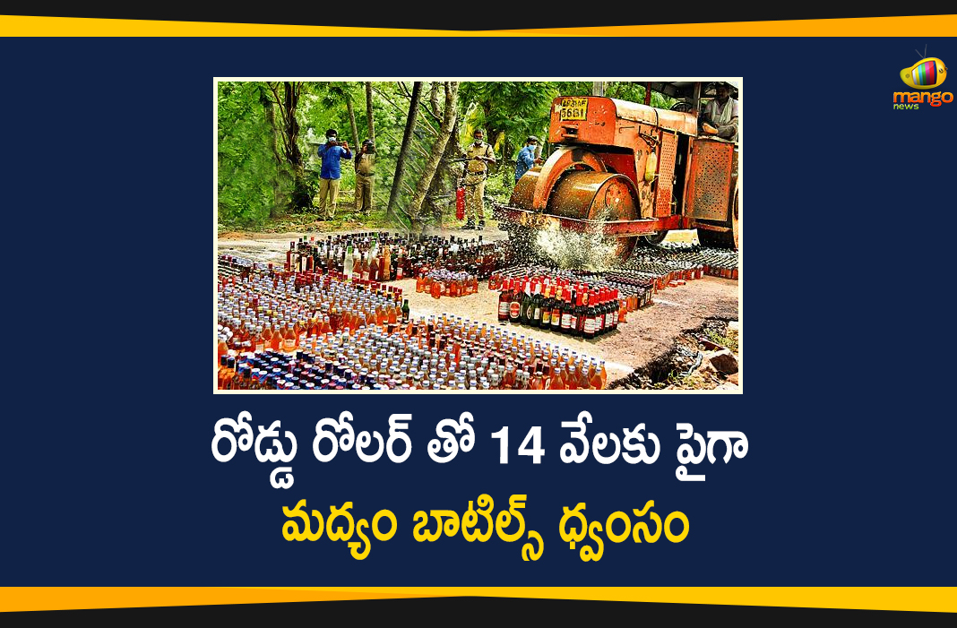 ఆంధ్రప్రదేశ్లోని మచిలీపట్నంలో 14,210 మద్యం బాటిళ్లను పోలీసులు రోడ్డు రోలర్ తో ధ్వంసం చేయించారు. గత రెండు నెలలుగా తెలంగాణ ప్రాంతాల నుంచి కృష్ణాజిల్లాలోకి అక్రమంగా తరలిస్తున్న మద్యాన్ని పోలీసులు స్వాధీనం చేసుకున్నారు. అనంతరం ఆ విధంగా పట్టుకున్న మద్యం బాటిల్స్ అన్నింటిని ఒక చోటికి చేర్చారు. ఈ నేపథ్యంలో అలా చేర్చిన సుమారు రూ.70 లక్షల విలువ చేసే 14వేలకు పైగా మద్యం బాటిళ్లను కృష్ణ జిల్లా పోలీసులు జూలై 17, శుక్రవారం నాడు మచిలీపట్టణంలోని పోలీస్ పరేడ్ గ్రౌండ్లో రోడ్డు రోలర్తో ధ్వంసం చేశారు.