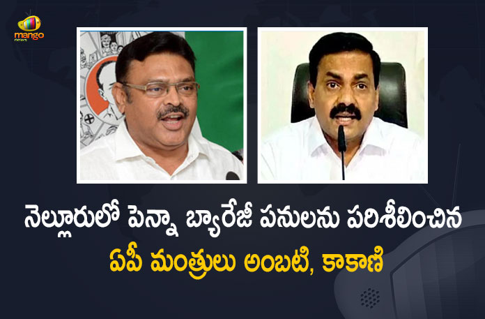 ఆంధ్రప్రదేశ్ రాష్ట్ర జల వనరుల శాఖ మంత్రి అంబటి రాంబాబు మరియు వ్యవసాయ శాఖ మంత్రి కాకాణి గోవర్ధన్ రెడ్డిలు ఈరోజు నెల్లూరులో పర్యటించారు. ఈ క్రమంలో జిల్లా త్రాగునీరు, సాగునీరు అవసరాల కోసం నిర్మిస్తున్న పెన్నా బ్యారేజీ పనులను పరిశీలించారు. ఈ సందర్భంగా ప్రాజెక్ట్ అధికారులకు నిర్మాణానికి సంబంధించి సూచనలు చేశారు. జిల్లా ప్రజల అవసరాలతో పాటు అకాల వర్షాలు మరియు అత్యధిక వర్షపాతం కారణంగా ఏర్పడే వరదల నివారణకు తోడ్పడేలా ఈ బ్యారేజీ నిర్మాణం చేపట్టినట్లు మంత్రులు మీడియాతో మాట్లాడుతూ తెలిపారు. దివంగత నేత, ఉమ్మడి రాష్ట్ర ముఖ్యమంత్రి వైఎస్సార్ ఈ బ్యారేజీలకు శంకుస్థాపన చేశారని, ప్రస్తుతం పెన్నా బ్యారేజీ పనులు 90 శాతం పైనే పూర్తయ్యాయని వెల్లడించారు. త్వరలోనే ఈ రెండు ప్రాజెక్టులను పూర్తి చేసి, సీఎం జగన్ చేతుల మీదుగా ప్రారంభం చేయిస్తామని మంత్రులు తెలియజేశారు.