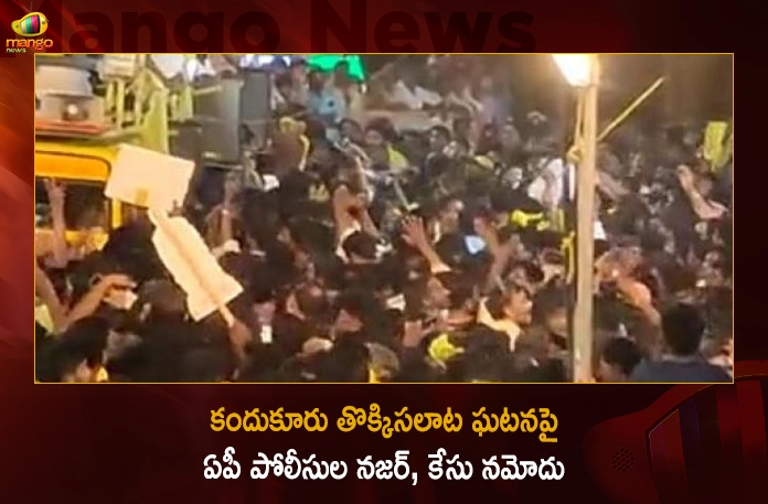 ఆంధ్రప్రదేశ్లోని నెల్లూరు జిల్లా కుందుకూరు పట్టణంలో బుధవారం రాత్రి తెలుగుదేశం పార్టీ (టీడీపీ) అధ్యక్షుడు, మాజీ ముఖ్యమంత్రి ఎన్. చంద్రబాబు నాయుడు రోడ్షో సందర్భంగా జరిగిన తొక్కిసలాటలో ఎనిమిది మంది మరణించిన ఘటనపై పోలీసులు కేసు నమోదు చేశారు. క్రిమినల్ ప్రొసీజర్ కోడ్ సెక్షన్ 174 కింద కుందుకూరు పోలీసులు కేసు నమోదు చేసి దర్యాప్తు చేపట్టారు. ఇక పోలీసులు ఈ ఘటనపై పూర్తి విచారణ చేసిన తర్వాత నిందితుల పేర్లను ఎఫ్ఐఆర్లో చేర్చనున్నారు. అయితే దీనిపై ప్రతిపక్ష టీడీపీ స్పందించింది. ఈ ఘటనకు పోలీసుల భద్రత సరిగా లేకపోవడమే కారణమని టీడీపీ ఆరోపిస్తోంది. రోడ్డుషోకి పెద్ద సంఖ్యలో జనం వస్తారని పోలీసులకు సమాచారం అందించినా సరైన ఏర్పాట్లు చేయడంలో విఫలమయ్యారని స్థానిక టీడీపీ నాయకులు తెలిపారు.