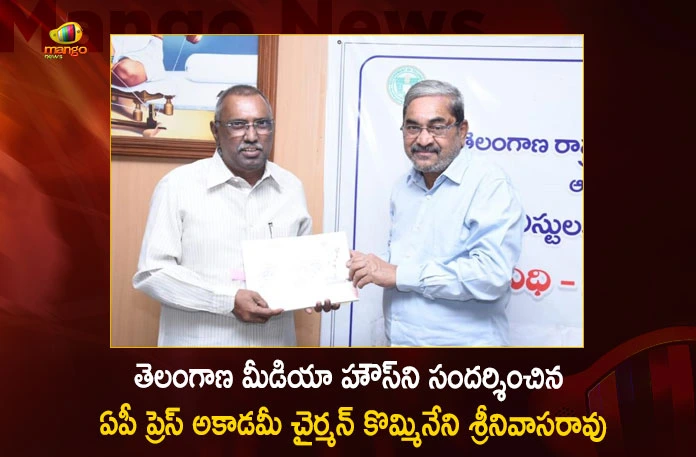 ఆంధ్రప్రదేశ్ ప్రెస్ అకాడమీ చైర్మన్ కొమ్మినేని శ్రీనివాసరావు తెలంగాణ మీడియా హౌస్ని సందర్శించారు. ఈ మేరకు శుక్రవారం ఆయన తెలంగాణ మీడియా అకాడమీ చైర్మన్ అల్లం నారాయణను మర్యాదపూర్వకంగా కలిశారు. జర్నలిస్టుల సంక్షేమానికి తెలంగాణ ప్రభుత్వం చేపడుతున్న కార్యక్రమాలను, అల్లం నారాయణ వివరంగా కొమ్మినేనికి తెలిపారు. గత ఎనిమిది సంవత్సరాల నుంచి అకాడమీ నిర్వహించిన శిక్షణ తరగతులు, సెమినార్లు మరియు ఇతర కార్యక్రమాల గురించి తెలియజేశారు. అలాగే మీడియా అకాడమీ ప్రచురణలు, ఇతర వివరాల నోట్ను కొమ్మినేనికి అందజేశారు. ఈ సందర్భంగా ఇద్దరు చైర్మన్లు ఒకరినొకరు శాలువాతో సత్కరించారు. ఇక ఈ కార్యక్రమంలో తెలంగాణ అకాడమీ సెక్రెటరీ నాగులాపల్లి వెంకటేశ్వర రావు మరియు రెండు రాష్ట్రాల అకాడమీల సిబ్బంది తదితరులు పాల్గొన్నారు. కాగా ఇటీవలే కొమ్మినేని శ్రీనివాసరావు ఏపీ ప్రెస్ అకాడమీ చైర్మన్గా నియమితులవడం తెలిసిన విషయమే. వచ్చే రెండేళ్లపాటు ఆయన ఈ పదవిలో కొనసాగనున్నారు.