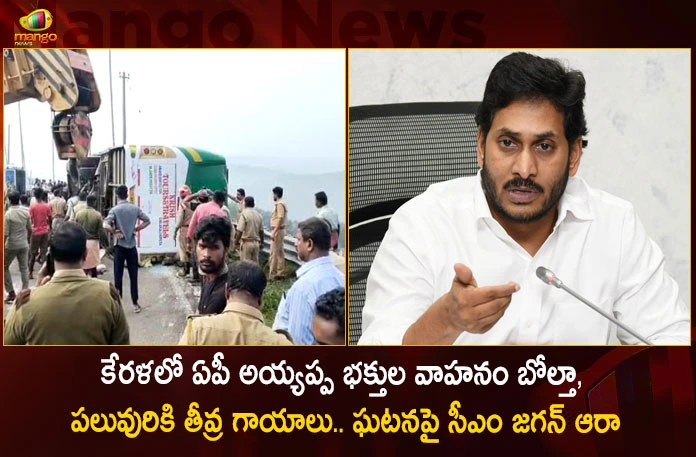 AP Sabarimala Devotees Injured in Bus Overturns Incident in Kerala Today CM Jagan Inquires,AP Sabarimala Devotees,CM Jagan Inquires,Bus Overturns Incident,Mango News,Mango News Telugu, Sabarimala Devotees Injured,Sabarimala Devotees,AP Sabarimala Devotees Injured,Sabarimala Bus Overturns,AP CM YS Jagan Mohan Reddy,YS Jagan News And Live Updates, YSR Congress Party, Andhra Pradesh News And Updates, AP Politics, Janasena Party, TDP Party, YSRCP, Political News And Latest Updates