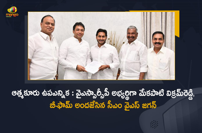 Atmakuru Bye-election CM YS Jagan Handover B-Form to YSRCP Candidate Mekapati Vikram Reddy, CM YS Jagan Handover B-Form to YSRCP Candidate Mekapati Vikram Reddy, AP CM YS Jagan Handover B-Form to YSRCP Candidate Mekapati Vikram Reddy, AP CM YS Jagan Mohan Reddy Handover B-Form to YSRCP Candidate Mekapati Vikram Reddy, AP CM YS Jagan Mohan Reddy Handover B-Form to YSRCP Candidate, YSRCP Candidate Mekapati Vikram Reddy, B-Form to YSRCP Candidate Mekapati Vikram Reddy, Mekapati Vikram Reddy, Atmakuru Bye-Poll, Atmakuru Bye-election, Atmakuru Bye-election News, Atmakuru Bye-election Latest News, Atmakuru Bye-election Latest Updates, Atmakuru Bye-election Live Updates, Mango News, Mango News Telugu,