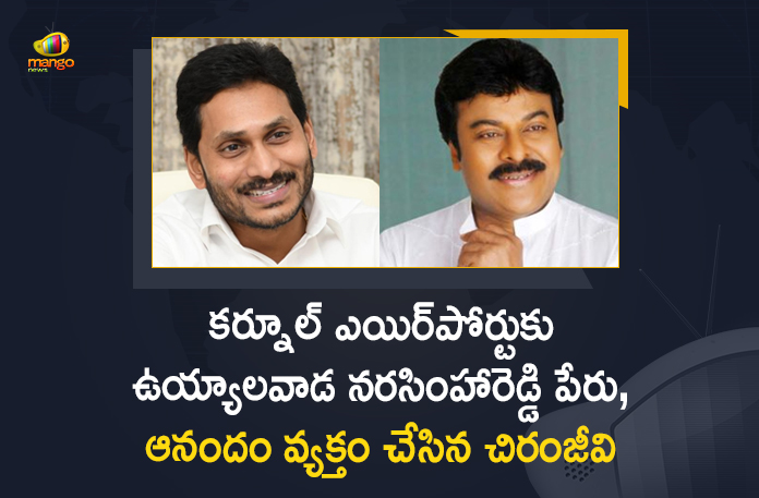 ఆంధ్రప్రదేశ్ ముఖ్యమంత్రి వైఎస్ జగన్ మోహన్ రెడ్డి గురువారం నాడు కర్నూలు జిల్లా ఓర్వకల్లులో నిర్మించిన ఎయిర్పోర్టును ప్రారంభించారు. అనంతరం అక్కడ జరిగిన సభలో ప్రసంగిస్తూ, కర్నూల్ గడ్డకు చెందిన స్వాతంత్య్ర యోధుడు ఉయ్యాలవాడ నరసింహరెడ్డి పేరును ఈ ఎయిర్పోర్టుకు పెడుతున్నట్టుగా సీఎం వైఎస్ జగన్ ప్రకటించారు. ఈ నేపథ్యంలో సీఎం వైఎస్ జగన్ చేసిన ప్రకటనపై ప్రముఖ నటుడు, మెగాస్టార్ చిరంజీవి స్పందించారు. కర్నూల్ ఎయిర్పోర్టుకు ఉయ్యాలవాడ నరసింహారెడ్డి పేరు పెట్టడం పట్ల ఆనందాన్ని వ్యక్తం చేశారు. ఈ మేరకు ఆయన ట్వీట్ చేశారు.