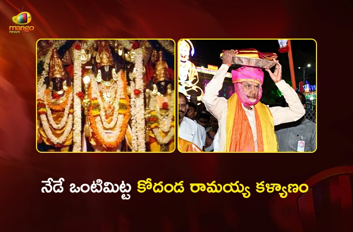 భక్తులంతా ఎదురుచూస్తున్న ఒంటిమిట్ట శ్రీ కొదండ రామయ్య స్వామి కళ్యాణోత్సవం నేడు రాత్రి అత్యంత వైభవంగా జరగనుంది. ఈ దివ్య వేడుక కోసం ఆలయ ప్రాంగణాన్ని సంప్రదాయ అలంకరణలతో సర్వాంగ సుందరంగా తీర్చిదిద్దారు. రాష్ట్రంలోని వివిధ ప్రాంతాల నుంచి భారీ సంఖ్యలో తరలివచ్చిన భక్తులతో ఈ ప్రాంతం ఆధ్యాత్మిక శోభను సంతరించుకుంది. ఉదయం నుంచే ప్రత్యేక పూజలతో ఆలయం పులకించిపోతోంది.