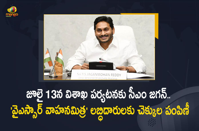 ఆంధ్రప్రదేశ్ ముఖ్యమంత్రి వైఎస్ జగన్ మోహన్ రెడ్డి విశాఖపట్నంలో పర్యటించనున్నారు. ఈ క్రమంలో ఆయన ‘వైఎస్సార్ వాహనమిత్ర’ లబ్ధిదారులకు చెక్కులు పంపిణీ చేయనున్నారు. 2022-23 సంవత్సరానికి సంబంధించి లబ్ధిదారులకు ఆర్థిక సహాయాన్ని విడుదల చేయనున్నారు. కాగా ఈ పథకం కింద రాష్ట్ర ప్రభుత్వం అర్హులైన ఆటో, టాక్సీ మరియు మ్యాక్సీ క్యాబ్ల డ్రైవర్లకు వార్షికంగా రూ. 10,000 నగదు ప్రోత్సాహకాన్ని అందిస్తోంది. ఈ నేపథ్యంలో సీఎం జగన్ పర్యటన షెడ్యూల్ ఖరారైంది.