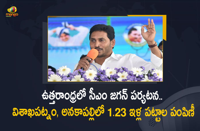 ఈరోజు ఉత్తరాంధ్రలో ముఖ్యమంత్రి వైఎస్ జగన్మోహన్ రెడ్డి పర్యటించారు. విశాఖపట్నం మరియు అనకాపల్లి జిల్లాల పరిధిలో దాదాపు 1.23 ఇళ్ల పట్టాల పంపిణీ కార్యక్రమాన్ని నిర్వహించారు. అర్హులైన లబ్ధిదారులకు ఇంటి స్థలాల పట్టాలను సీఎం జగన్ పంపిణీ చేశారు. పర్యటనలో భాగంగా.. అనకాపల్లి జిల్లా సబ్బవరం మండలం పైడివాడ అగ్రహారం వైఎస్సార్ పార్క్లో వైఎస్ రాజశేఖర్ రెడ్డి విగ్రహాన్ని ఆవిష్కరించారు. తర్వాత అక్కడ ఏర్పాటు చేసిన పైలాన్ను ఆవిష్కరించిన అనంతరం మోడల్ గృహాల్ని లబ్ధిదారులకు అందజేశారు. ఆపై బహిరంగ సభలో ముఖ్యమంత్రి ప్రసంగించారు.