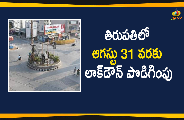 ఆంధ్రప్రదేశ్ లోని చిత్తూరు జిల్లాలో గత కొన్ని రోజులుగా కరోనా పాజిటివ్ కేసుల సంఖ్య పెరుగుతుంది. ముఖ్యంగా తిరుపతిలో కరోనా ప్రభావం ఎక్కువవుతుంది. ఈ నేపథ్యంలో ముందుగా ఆగస్టు 14 వరకు తిరుపతి నగరంలో పూర్తిస్థాయి లాక్డౌన్ ఆంక్షలు విధించిన సంగతి తెలిసిందే. కాగా కరోనా కేసులు పెరుగుతుండటంతో లాక్డౌన్ ను మరికొన్ని రోజులు పొడిగించారు. ఆగస్టు 31 వరకు లాక్డౌన్ అమలులో ఉంటుందని తిరుపతి మున్సిపల్ కార్పోరేషన్ కమిషనర్ పి.ఎస్ గిరీష ప్రకటించారు.