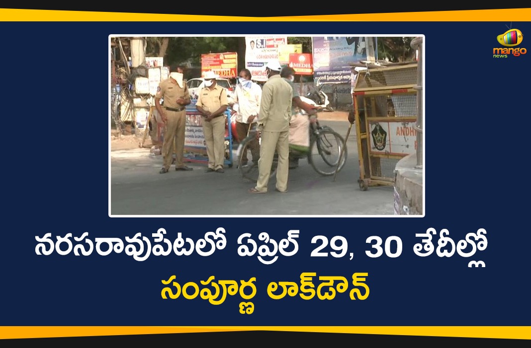 ఆంధ్రప్రదేశ్ లోని గుంటూరు జిల్లాలో ఇప్పటివరకు 254 కరోనా పాజిటివ్ కేసులు నమోదైన సంగతి తెలిసిందే. ఈ నేపథ్యంలో జిల్లా పరిధిలోని నరసరావుపేటలో కరోనా కేసులు పెరుగుతుండడంతో 48 గంటల పాటు పూర్తిస్థాయి లాక్డౌన్ అమలుకు జిల్లా కలెక్టర్ శామ్యూల్ ఆనందకుమార్ ఆదేశాలు జారీ చేశారు. కరోనా నియంత్రణ చర్యల్లో భాగంగా ఏప్రిల్ 29, 30 తేదీల్లో సంపూర్ణ లాక్డౌన్ అమలు చేస్తున్నామని, ఎవరూ బయటకు రాకుండా చర్యలు చేపడుతున్నట్టు ప్రకటించారు.