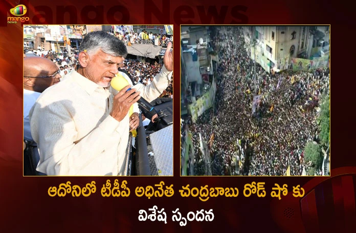 కర్నూల్ జిల్లాలో టీడీపీ అధినేత చంద్రబాబు నాయుడు పర్యటన కొనసాగుతుంది. అందులో భాగంగా చంద్రబాబు గురువారం ఆదోనిలో రోడ్ షో నిర్వహించారు. ఆదోని పట్టణంలో చంద్రబాబు రోడ్ షోకు జనం భారీగా తరలివచ్చారు. పార్టీ నాయకులు, కార్యకర్తలు, ప్రజలు భారీ సంఖ్యలో పాల్గొనడంతో ఆదోనిలో వీధులన్నీ జనసంద్రంగా మారిపోయాయి. ఈ రోడ్ షోకు విశేష స్పందన రావడంతో స్థానిక పార్టీ నాయకుల్లో ఉత్సాహం నెలకుంది. రోడ్ షో అనంతరం మధ్యాహ్నం ఆర్ట్స్ కాలేజీ వద్ద బహిరంగ సభలో చంద్రబాబు పాల్గొని ప్రసంగించనున్నారు. అనంతరం ఎమ్మిగనూరు మండలంలోని చెన్నాపురం, వెంకటాపురంలో పర్యటిస్తారు. అదేవిధంగా సాయంత్రం ఆర్ అండ్ బీ గెస్ట్ హౌస్, అన్నమయ్య సర్కిల్, శివ సర్కిల్, సోమప్ప సర్కిల్, శ్రీనివాస సర్కిల్, సోమేశ్వర సర్కిల్ ప్రాంతాల్లో చంద్రబాబు రోడ్ షోలో పాల్గొంటారు. ఆ తర్వాత ఎమ్మిగనూరు చేరుకుని బహిరంగసభలో పాల్గొంటారు. ఈ రాత్రికి కర్నూల్ చేరుకొని అక్కడే బస చేయనున్నారు.