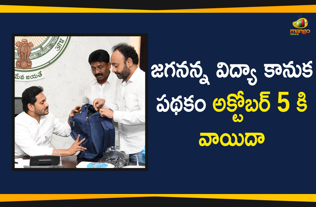 ఆంధ్రప్రదేశ్ రాష్ట్రంలో విద్యార్థులకు కోసం “జగనన్న విద్యా కానుక” పేరుతో కొత్త పథకానికి ఏపీ ప్రభుత్వం రూపకల్పన చేసిన సంగతి తెలిసిందే. 2020–21 విద్యా సంవత్సరం నుంచే 1 నుంచి 10వ తరగతి వరకు చదివే విద్యార్థులకు 7 రకాల వస్తువులతో కూడిన కిట్ ను విద్యాకానుక కింద అందించాలని నిర్ణయించారు. ముందుగా సెప్టెంబర్ 5 న పాఠశాలలు ప్రారంభించాలని నిర్ణయించిన నేపథ్యంలో అదేరోజున విద్యార్థులకు జగనన్న విద్యా కానుక కిట్ అందించేలా ఏర్పాట్లు చేశారు. అయితే కేంద్ర ప్రభుత్వం ఇటీవల జారీచేసిన అన్ లాక్-4 మార్గదర్శకాలలో ప్రస్తుత కరోనా పరిస్థితుల దృష్ట్యా సెప్టెంబరు 30 వరకు పాఠశాలలు తెరవకూడదని పేర్కొన్నారు. ఈ నేపథ్యంలో జగనన్న విద్యాకానుక కార్యక్రమాన్ని తాత్కాలికంగా వాయిదా వేస్తున్నట్లు ఏపీ పాఠశాల విద్య సంచాలకులు వాడ్రేవు చినవీరభద్రుడు ఓ ప్రకటన ద్వారా వెల్లడించారు. ఈ కార్యక్రమాన్ని అక్టోబరు 5 వ తేదికి వాయిదా వేసినట్టుగా ప్రకటించారు.