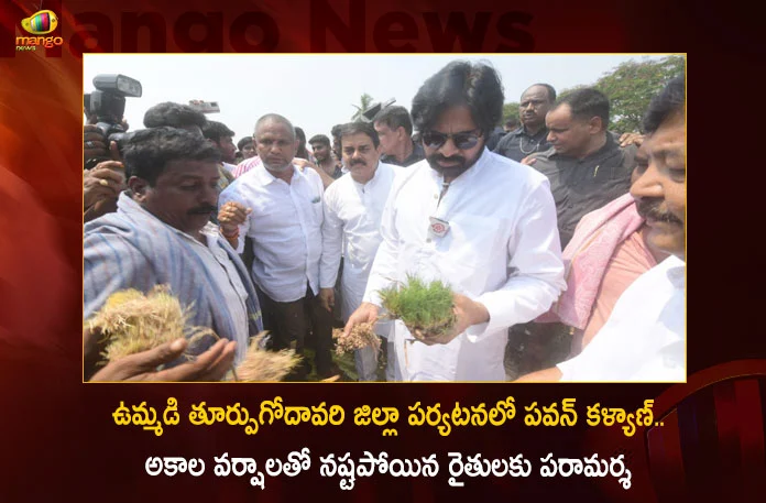 జనసేన అధినేత పవన్ కళ్యాణ్ బుధవారం ఉమ్మడి తూర్పు గోదావరి జిల్లాలో పర్యటించారు. పర్యటనలో భాగంగా ఆయన ఇటీవలి అకాల వర్షాల కారణంగా నష్టపోయిన రైతులను పరామర్శించారు. నష్టపోయిన రైతాంగాన్ని తక్షణమే ఆదుకోవాలని ఈ సందర్భంగా పవన్ కళ్యాణ్ ప్రభుత్వాన్ని డిమాండ్ చేశారు. పంట పొలాల్లోకి వెళ్లి దెబ్బతిన్న పంటలను పరిశీలించి, రైతులతో మాట్లాడటం ద్వారా వారి బాధలను స్వయంగా తెలుసుకున్నారు. ఇక ఈ పర్యటనలో పవన్తో కలిసి జనసేన పార్టీ రాజకీయ వ్యవహారాల కమిటీ చైర్మన్ నాదెండ్ల మనోహర్ మరియు జిల్లా స్థానిక నేతలు పలువురు పాల్గొననున్నారు.
