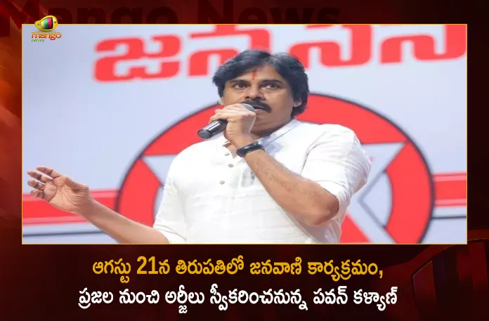 జనసేన పార్టీ అధినేత పవన్ కళ్యాణ్ ఆగస్టు 21, ఆదివారం నాడు తిరుపతిలో “జనవాణి-జనసేన భరోసా” కార్యక్రమాన్ని నిర్వహించనున్నారు. ఈ మేరకు జనసేన పార్టీ ఒక ప్రకటన విడుదల చేసింది. “ప్రజా సమస్యలను పరిష్కరించడమే లక్ష్యంగా జనసేన పార్టీ ఆధ్వర్యంలో చేపట్టిన జనవాణి కార్యక్రమం ఈ నెల 21వ తేదీన తిరుపతిలో జరగనుంది. ముందుగా చెప్పినట్లు రాయలసీమ ప్రాంతంలో నిర్వహించే కార్యక్రమంలో భాగంగా ఈనెల 21వ తేదీ, ఆదివారం తిరుపతిలోని జి.ఆర్.ఆర్ కన్వెన్షన్ హాల్లో ఉదయం 10 గంటల నుంచి కార్యక్రమం మొదలుకానుంది. రాయలసీమలోని ఉమ్మడి చిత్తూరు, అనంతపురం, కడప, కర్నూలు జిల్లాలతోపాటు నెల్లూరు జిల్లా నుంచి కూడా ప్రజలు తమ సమస్యలను జనసేన అధ్యక్షుడు పవన్ కళ్యాణ్ దృష్టికి తీసుకురావచ్చు” అని తెలిపారు.