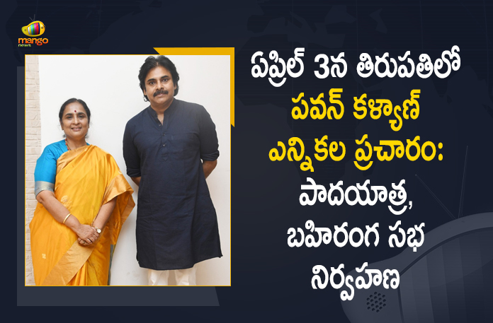 తిరుపతి లోక్‌సభ ఉపఎన్నిక: ఏప్రిల్ 3 న పవన్ కళ్యాణ్ పాదయాత్ర, బహిరంగ సభ