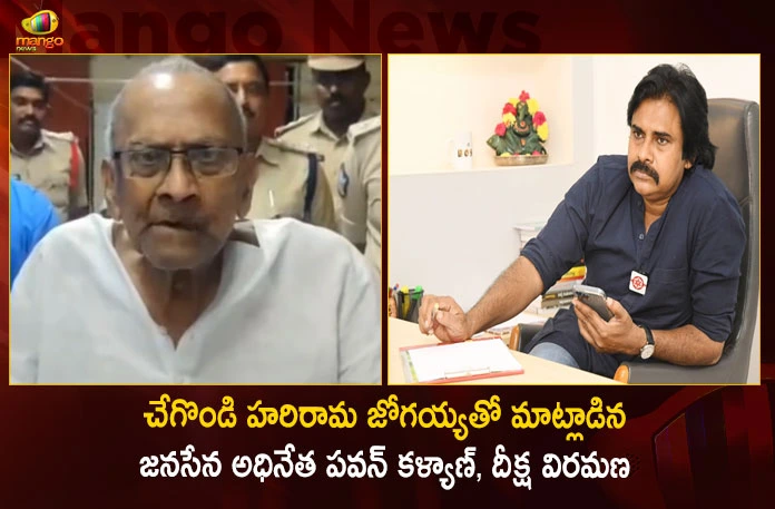 కాపు సంక్షేమసేన వ్యవస్థాపక అధ్యక్షుడు, మాజీ మంత్రి చేగొండి హరిరామ జోగయ్య కాపు రిజర్వేషన్ కోసం సోమవారం ఆమరణ దీక్ష ప్రారంభించిన విషయం తెలిసిందే. ఈ నేపథ్యంలో హరిరామ జోగయ్యకు జనసేన అధినేత పవన్ కళ్యాణ్ ఫోన్ చేసి మాట్లాడి, వయసురీత్యా దీక్ష విరమించాలని సూచించగా, ఆయన సానుకూల స్పందించి దీక్షను విరమించుకున్నారు. ఏలూరు ఆసుపత్రిలోనే హరిరామ జోగయ్య నిమ్మరసం తాగి దీక్షను విరమించారు.