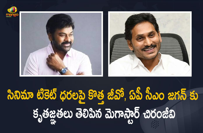 ఆంధ్రప్రదేశ్ రాష్ట్ర ప్రభుత్వం సినిమా టికెట్ ధరల సవరణకు సంబంధించి సోమవారం నాడు కొత్త జీవో జారీ చేసిన సంగతి తెలిసిందే. సినిమా టికెట్ ధరల కోసం మున్సిపల్ కార్పొరేషన్, మున్సిపాలిటీ, నగర పంచాయతీ/గ్రామ పంచాయతీలుగా విభజన చేస్తూ, నాన్ ఏసీ, ఏసీ, స్పెషల్ థియేటర్స్, మల్టీ ఫ్లెక్సీల వారీగా టికెట్ల ధరలను నిర్ణయిస్తూ జీవో జారీ చేసింది. రాష్ట్రంలో సినిమా టికెట్ కనీస ధర రూ.20 ఉండగా, గరిష్ఠంగా రూ.250గా నిర్ణయించారు. సినిమా టికెట్ ధరలను సవరిస్తూ ఏపీ ప్రభుత్వం నిర్ణయం తీసుకున్న నేపథ్యంలో ముఖ్యమంత్రి వైఎస్ జగన్ మోహన్ రెడ్డికి ప్రముఖ అగ్రనటుడు, మెగాస్టార్ చిరంజీవి కృతజ్ఞతలు తెలిపారు. ఈ మేరకు ఆయన ట్వీట్ చేశారు.