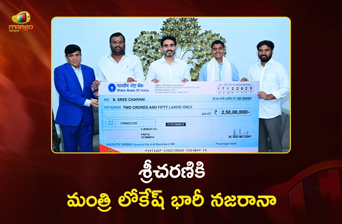 తాజాగా, ఉండవల్లిలోని తన నివాసంలో మంత్రి నారా లోకేష్ శ్రీచరణిని కలిసి, రూ. 2.5 కోట్ల నగదుకు సంబంధించిన చెక్కును ఆమెకు స్వయంగా అందజేశారు. ఈ కార్యక్రమంలో రవాణా మరియు యువజన క్రీడా శాఖ మంత్రి మండిపల్లి రాంప్రసాద్ రెడ్డి, శాప్ (SAAP) ఛైర్మన్ అనిమిని రవినాయుడు కూడా పాల్గొన్నారు.