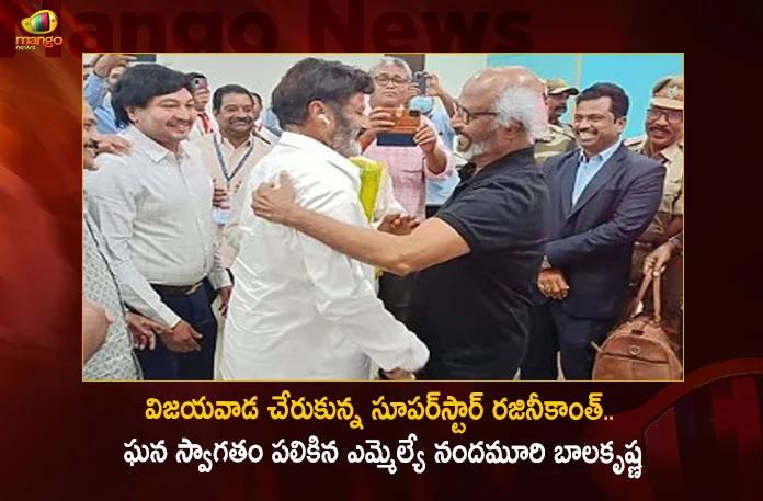 తెలుగుదేశం పార్టీ వ్యవస్థాపక అధ్యక్షుడు, మాజీ ముఖ్యమంత్రి స్వర్గీయ నందమూరి తారక రామారావు (ఎన్టీఆర్) శతజయంతి వేడుకలలో పాల్గొనేందుకు తమిళ సూపర్స్టార్ రజినీకాంత్ శుక్రవారం విజయవాడ చేరుకున్నారు. ఎన్టీఆర్ శతజయంతి వేడుకల అంకురార్పణ సభలో ఆయన ముఖ్య అతిథిగా పాల్గొననున్నారు. ఈ సందర్భంగా నేటి ఉదయం చెన్నై నుంచి విజయవాడ సమీపంలోని గన్నవరం విమానాశ్రయం చేరుకున్న రజినీకాంత్కు ఎన్టీఆర్ కుమారుడు, టాలీవుడ్ అగ్రనటుడు, హిందూపురం ఎమ్మెల్యే నందమూరి బాలకృష్ణ ఘన స్వాగతం పలికారు. ఆయనతో పాటు టీడీపీకి చెందిన సీనియర్ నేత టీడీ జనార్దన్ మరియు శత జయంతి వేడుకల సావనీర్ కమిటీ రజినీకాంత్ను రిసీవ్ చేసుకునేందుకు గన్నవరం విచ్చేసారు. ఇక బాలకృష్ణను చూడగానే రజినీకాంత్ దగ్గరకు వచ్చి ఆలింగనం చేసుకున్నారు. ఎలా ఉన్నారంటూ ఒకరికొకరు పరస్పరం కుశల ప్రశ్నలు వేసుకున్నారు. అనంతరం ఒకే కారులో ఇరువురు నోవోటెల్కు బయలుదేరి వెళ్లారు.