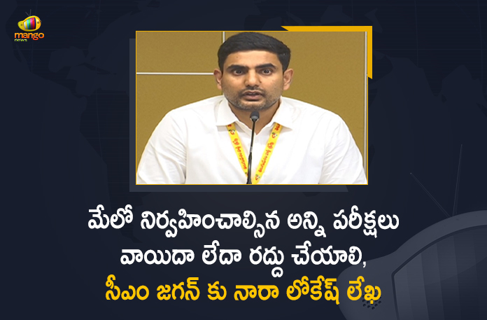 రాష్ట్రంలో నెలలో నిర్వహించాల్సిన అన్ని పరీక్షలు వాయిదా వేయటం లేదా రద్దు చేయాలని కోరుతూ ఏపీ ముఖ్యమంత్రి వైఎస్ జగన్ మోహన్ రెడ్డికి టీడీపీ జాతీయ ప్రధాన కార్యదర్శి నారా లోకేష్ లేఖ లేశారు. ఈ మేరకు ఆయన ట్వీట్ చేశారు. “మేలో నిర్వహించాల్సిన అన్ని పరీక్షలు వాయిదా వేయటం లేదా రద్దు చేయాలని సీఎం వైఎస్ జగన్ గారికి లేఖ రాసాను. మూడు వారాల ఆందోళన, న్యాయపోరాటం తర్వాత ఇంటర్ పరీక్షలు వాయిదా వేసినందుకు కృతజ్ఞతలు. ఇదే స్ఫూర్తితో, రాష్ట్ర ప్రభుత్వం ఆధ్వర్యంలో మే నెలలో జరిగే అన్ని పరీక్షలు వాయిదా వేయాలని/లేదంటే రద్దు చేయాలని కోరాను” అని నారా లోకేష్ పేర్కొన్నారు.