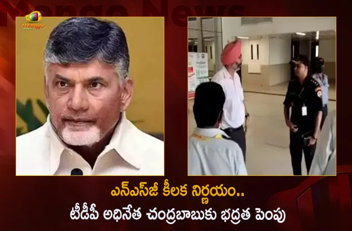 అలాగే చంద్రబాబు నాయుడును కలవడానికి వచ్చేవారిని తనిఖీ చేసే విధానంతో పాటు ఎలాంటి సాంకేతిక పరికరాలు వాడుతున్నారు అనే విషయాలపై ఎన్ఎస్జీ డీఐజీ వారిని అడిగి తెలుసుకున్నారు. మరో రెండేళ్లలో ఎన్నికలు దృష్ట్యా ఆయన భద్రత విషయంలో తీసుకోవాల్సిన జాగ్రత్తలపై సిబ్బందికి కీలక సూచనలిచ్చారు. ఈ క్రమంలో చంద్రబాబుకు భద్రత పెంచాలని నిర్ణయం తీసుకున్నారు. దీంతో చంద్రబాబుకు గతంలో 8 మంది నేషనల్ సెక్యూరిటీ గార్డులు రక్షణ బాధ్యతలు నిర్వర్తిస్తుండగా, ఇకపై అదనంగా మరో 20 మందిని కేటాయించారు. అలాగే గతంలో డీఎస్పీ ర్యాంకు అధికారి పర్యవేక్షణలో భద్రతా సిబ్బంది విధులు నిర్వహిస్తుండగా, ఇక నుంచి డీఐజీ ర్యాంకు అధికారి పర్యవేక్షణ వహించనున్నారు. కాగా తాజాగా చంద్రబాబు కుప్పం పర్యటనలో టీడీపీ ఆధ్వర్యంలో నిర్వహిస్తున్న అన్న క్యాంటీన్ను వైసీపీ కార్యకర్తలు ధ్వంసం చేయడం, ఆయన పర్యటించిన గ్రామాల్లో టీడీపీ ఫ్లెక్సీలను చించివేయడం వంటి ఘర్షణపూరిత వాతావరణంలో ఎన్ఎస్జీ ఆయన భద్రతా పెంపు నిర్ణయం తీసుకోవడం గమనార్హం.