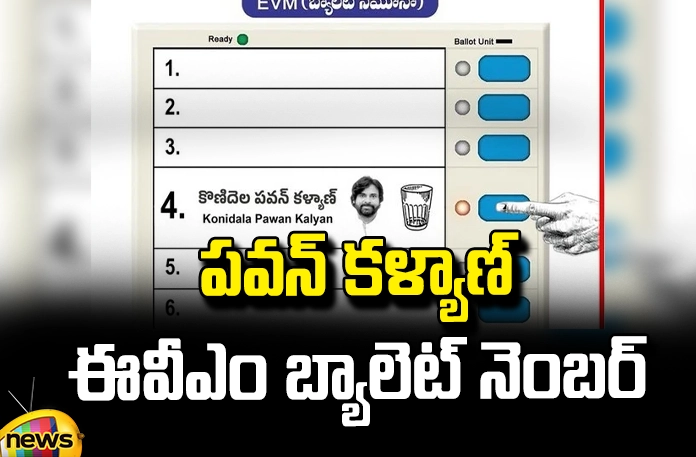 జనసేన పిఠాపురం ఎమ్మెల్యే అభ్యర్థి: కొణిదెల పవన్ కళ్యాణ్…ఈవీఎం బ్యాలెట్ నెంబర్: 04 అంటూ జనసేన ఎక్స్ ఖాతా ద్వారా వివరించింది. ఈవీఎం బ్యాలెట్ ఆర్డర్ లో పవన్ కళ్యాణ్ పేరు నాలుగో స్థానం లో ఉందని… పక్కనే గాజు గ్లాసు గుర్తు ఉందని చెబుతూ ఓటర్లకు అవగాహన కల్పించింది. ఈవీఎంలో ఉన్న 4వ నెంబరు ప్రెస్ చేసి.. పిఠాపురం నియోజకవర్గం కూటమి ఎమ్మెల్యే అభ్యర్థి పవన్ కళ్యాణ్ను అఖండ మెజారిటీతో గెలిపిద్దామని జనసేన పార్టీ ఆ ప్రకటనలో తెలియజేసింది.