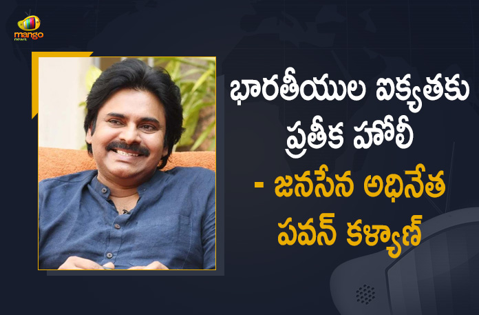 భారతీయుల ఐక్యతకు ప్రతీక హోలీ పండుగ అని జనసేన పార్టీ అధినేత పవన్ కళ్యాణ్ అన్నారు. హోలీ పండుగ జరుపుకునే దేశ ప్రజలందరికి పవన్ కళ్యాణ్ శుభాకాంక్షలు తెలియజేశారు. ఈ మేరకు ఆయన ఒక ప్రకటన విడుదల చేశారు. “భారతీయులకు ముఖ్యంగా హిందువులకు ప్రకృతి ప్రసాదించిన ఉల్లాసకరమైన పండుగ ‘హాలీ’. వసంత రుతువులో వచ్చే ఈ పండుగను వసంతోత్సవంగా జరుపుకొనే ఈ వేడుక వేళ దేశ ప్రజలందరికీ నా తరపున, జనసేన తరపున ఆనందకర హోలీ శుభాకాంక్షలు. మన దేశంలో వివిధ పేర్లతో, వివిధ పురాణాల నేపథ్యంలో ఈ పండుగ జరుపుకొంటున్నప్పటికీ భారతీయలు ఐక్యతకు ప్రతీకగా హోలీ శతాబ్దాల తరబడి విరాజిల్లుతోంది. రంగులు, పూల సమ్మేళనంతో నిండి ఉండే ఈ పండుగలానే ప్రజలందరి జీవితాల్లో మంచి ఆరోగ్యం, సుఖ శాంతులు విరబూయాలని మనస్పూర్తిగా ఆకాంక్షిస్తున్నాను. ఈ పండుగను ప్రకృతి పరంగా లభించే సహజ సిద్ధమైన రంగుల మిశ్రమాలతో జరుపుకోవాలని విజ్ఞప్తి చేస్తున్నాను” అని పవన్ కళ్యాణ్ పేర్కొన్నారు.