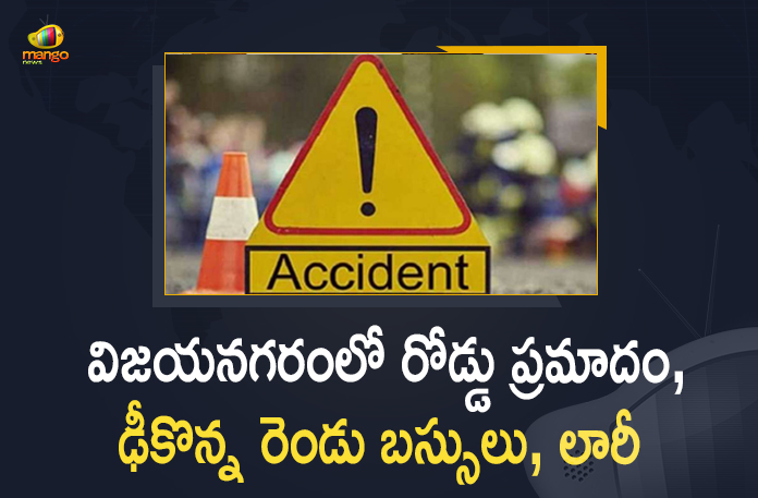 విజయనగరం జిల్లాలో సోమవారం ఉదయం ఘోర రోడ్డుప్రమాదం చోటుచేసుకుంది. విజయనగరం మండలం సుంకరిపేట జంక్షన్ వద్ద రెండు ఆర్టీసి బస్సులు, లారీ ఢికొన్నాయి. ఈ ఘటనలో ముగ్గురు వ్యక్తులు చనిపోగా, పలువురు ప్రయాణికులు గాయపడ్డారు. గాయపడిన ప్రయాణికులను సమీపంలోని జిల్లా ఆసుపత్రికి తరలించి చికిత్స అందిస్తున్నారు. మరికొంతమందిని మెరుగైన చికిత్స కోసం విశాఖపట్నంలోని కేజిహెఛ్ కు తరలించినట్టుగా తెలుస్తుంది. ముందుగా ఎదురెదురుగా వస్తున్న ఆర్టీసీ బస్సులు ఢీకొనగా, ఈ క్రమంలో వెనుకనుంచి వస్తున్న లారీ కూడా ఓ బస్సును బలంగా ఢీకొట్టడంతో ప్రమాద తీవ్రత ఎక్కువగా ఉంది.