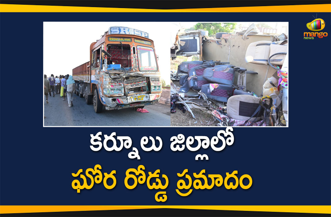 కర్నూలు జిల్లాలో ఆదివారం తెల్లవారు జామున ఘోర రోడ్డు ప్రమాదం జరిగింది. జిల్లాలోని వెల్దుర్తి మండలంలోని మాదార్ పురం హైదరాబాద్-బెంగళూరు జాతీయ రహదారి 44 పై ఈ ప్రమాదం చోటు చేసుకుంది. టెంపో వాహనం అదుపుతప్పి డివైడర్ను దాటి అవతలి వైపు ఎదురుగా వస్తున్న లారీని వేగంగా ఢీకొట్టింది. ఈ ప్రమాదంలో 14 మంది (8 మంది మహిళలు, 5మంది పురుషులు, చిన్న బాలుడు) అక్కడికక్కడే మృతి చెందారు. టెంపో వాహనం నుజ్జునుజ్జవ్వడంతో మృతదేహాలన్నీ అందులో ఇరుక్కుపోయాయి. క్రేన్ సాయంతో టెంపో వాహనం నుంచి మృతదేహాలను బయటకు తీశారు. ప్రమాదం జరిగిన సమయంలో టెంపోలో 18 మంది ఉండగా, మరో నలుగురు చిన్నారులు తీవ్ర గాయాలతో ప్రమాదం నుంచి బయటపడ్డారు. సమాచారం అందిన వెంటనే పోలీసులు అక్కడికి చేరుకొని సహాయక చర్యలు చేపట్టారు.