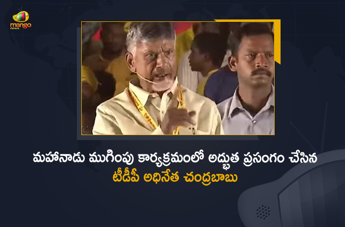 ఏపీలో టీడీపీ గెలుపు రాష్ట్రానికి చారిత్రక అవసరమని, వచ్చే ఎన్నికల్లో ఖచ్చితంగా అధికారంలోకి వస్తామని విశ్వాసం వ్యక్తం చేశారు తెలుగుదేశం పార్టీ అధ్యక్షుడు చంద్రబాబు నాయుడు. ఒంగోలులో నిన్నటి నుంచి జరుగుతున్న మహానాడు కార్యక్రమం నేటితో ముగిసింది. ముగింపు సందర్భంగా చంద్రబాబు భారీగా హాజరైన కార్యకర్తలనుద్దేశించి బహిరంగ వేదికపై అద్భుత ప్రసంగం చేశారు. ఆయన ప్రసంగంలోని కొన్ని ముఖ్యాంశాలు..