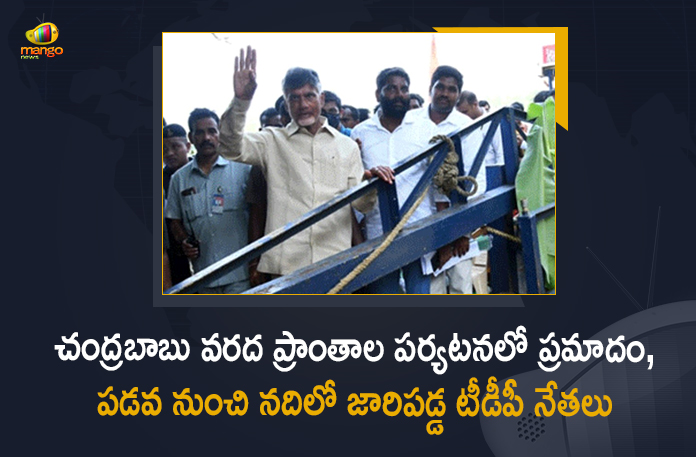 చంద్రబాబు వరద ప్రాంతాల పర్యటనలో ప్రమాదం, పడవ నుంచి నదిలో జారిపడ్డ టీడీపీ నేతలు
