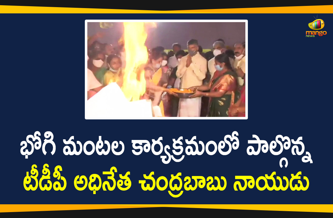 భోగి పండుగ సందర్భంగా బుధవారం నాడు కృష్ణా జిల్లాలోని పరిటాల గ్రామంలో ఏర్పాటు చేసిన భోగి మంటల కార్యక్రమంలో మాజీ ముఖ్యమంత్రి, టీడీపీ అధినేత నారా చంద్రబాబు నాయుడు పాల్గొన్నారు. ఈ సందర్భంగా ప్రభుత్వం తెచ్చిన జీవోల కాపీలను చంద్రబాబు భోగిమంటలో వేశారు. అనంతరం ఆయన మాట్లాడుతూ రైతు కన్నీరు రాష్ట్రానికి, దేశానికి మంచిది కాదన్నారు. కష్టాల్లో ఉన్న రైతులను కేంద్ర, రాష్ట్ర ప్రభుత్వాలు ఆదుకోవాలని సూచించారు.